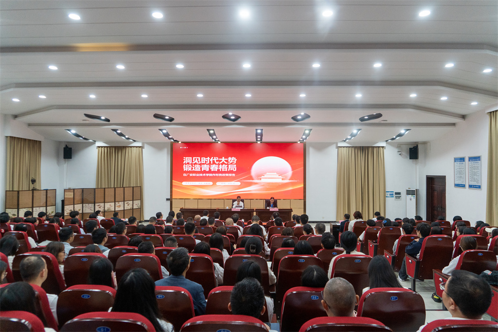 10月16日上午,市委副书记、市长刘襄渝到广安职业技术学院作形势政策报告,强调要深入学习贯彻习近平新时代中国特色社会主义思想,胸怀远大理想、培塑全局视野、厚植家国情怀、保持奋斗姿态,为推动高质量发展贡献智慧和力量。