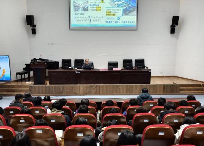 12月23日,学校党委委员、副校长罗龙海以“正确认识中国经济热点问题”为主题,为建筑工程学院师生讲授形势与政策课。学院120余名师生代表现场聆听。
