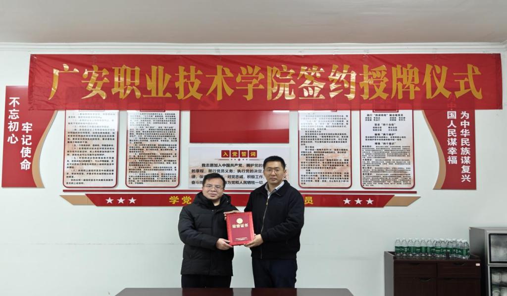 仪式上,学院聘任企业技术专家李勇兵总经理为产业导师,企业聘任学院李宏政博士为企业科技副总。双方共同为设立于企业的博士创新工作站与产学研合作基地揭牌。