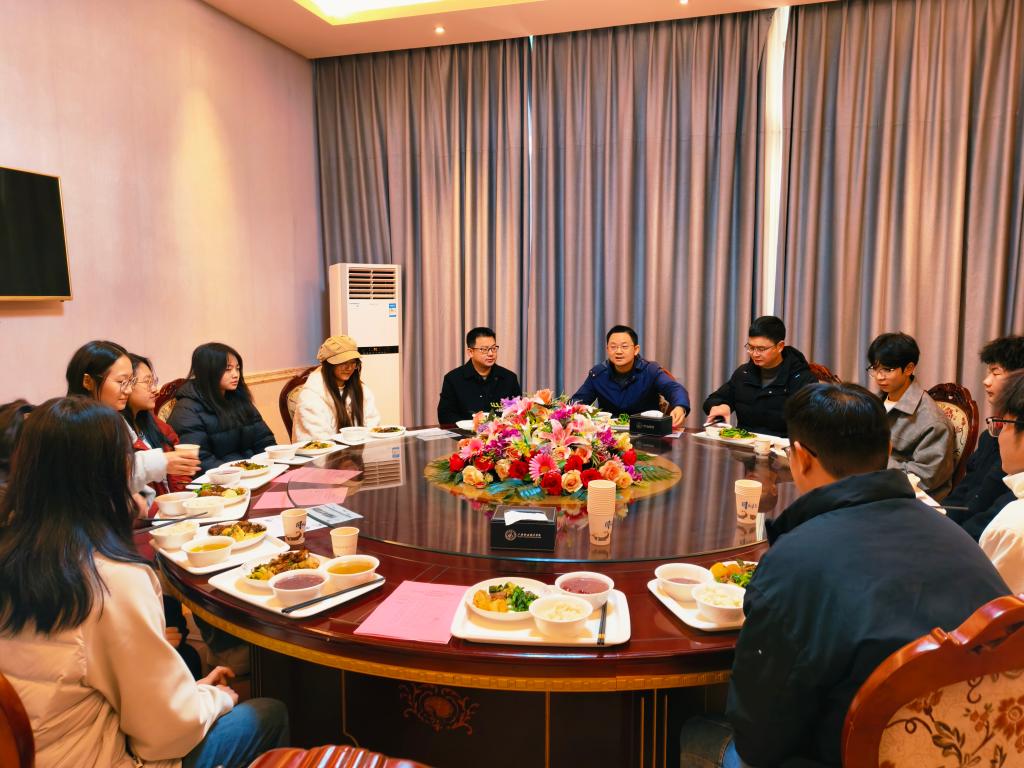 1月26日中午,学校教职工餐厅思源厅内气氛热烈、暖意融融。学校党委副书记陈鹏,党委委员、副校长李俊泓与留校学生共进午餐,举行了腊八节师生座谈交流暨2026年首期“书记校长午餐会”。