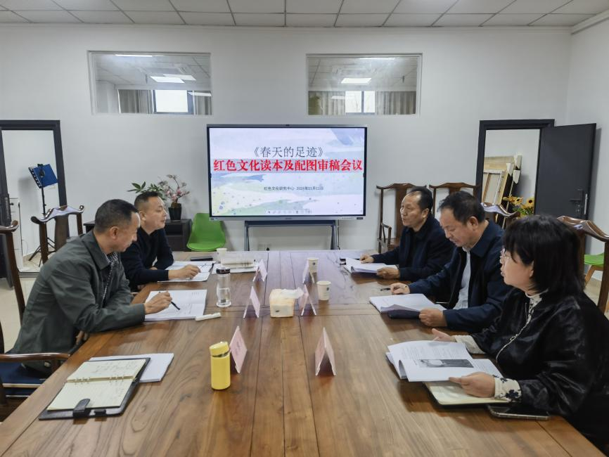 11月11日上午,广安职业技术学院红色文化研究中心在721多功能研讨室举办了《春天的足迹》红色文化读本文本及配图审稿会议。本次会议由红色文化研究中心主任曹馨主持,旨在进一步探讨和优化《春天的足迹》读本的内容、结构与形式,确保其能够更好地传播红色文化,弘扬革命精神。