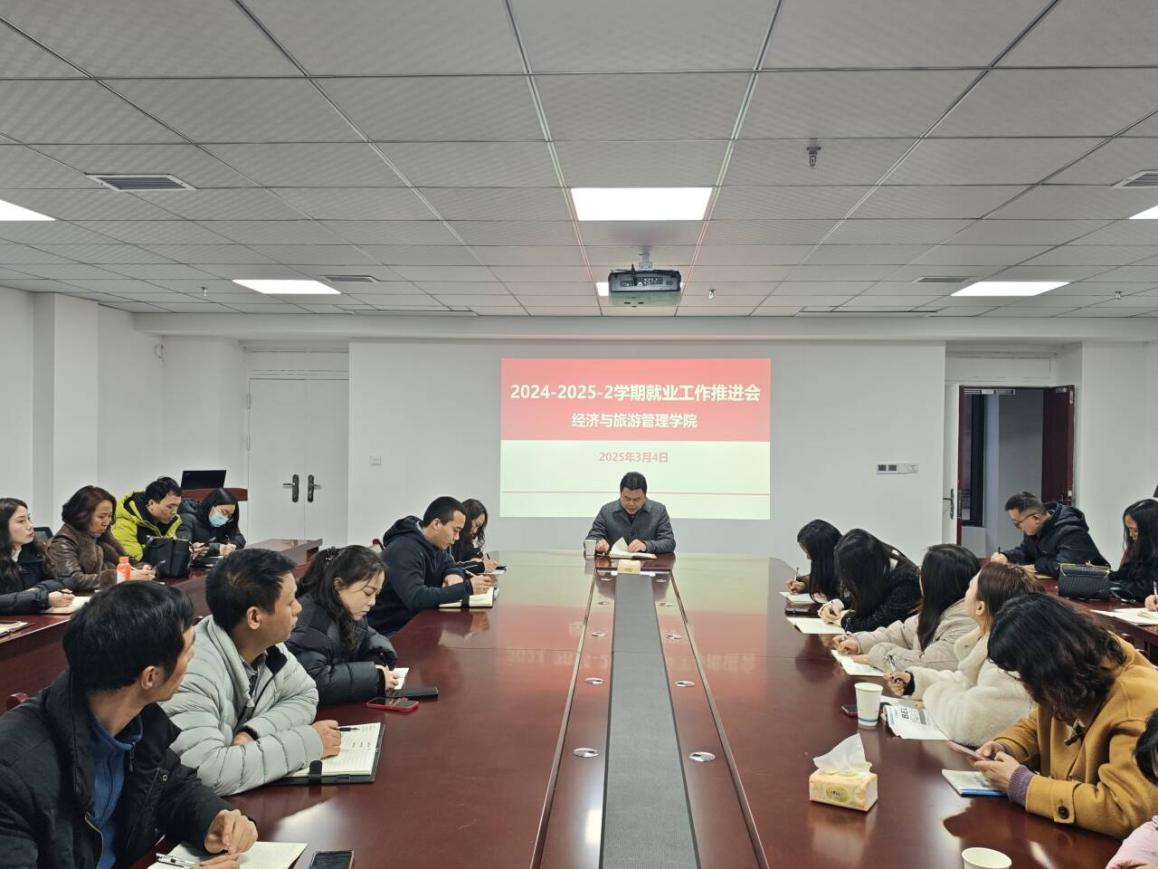 为贯彻落实中央、省、市关于高校就业工作的要求和学校就业工作安排,加快推动毕业生就业工作,经济与旅游管理学院于3月4日在经管大楼11楼会议室召开了2025届毕业生就业工作推进会。此次就业工作推进会由学院党总支书记吴小平主持,全院教职工参加。