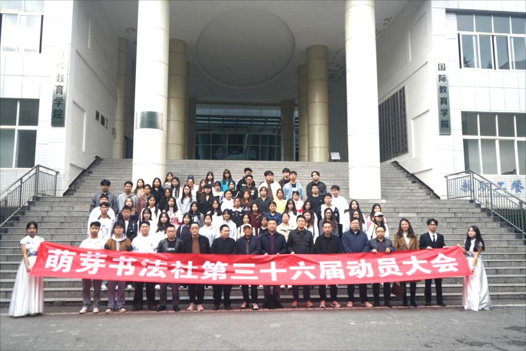 11月4日下午,广安职业技术学院萌芽书法社成立36周年暨迎新动员大会在学校希贤厅举行。广安市文联党组成员、秘书长、市书法家协会主席周永生,四川省硬笔书法家协会副主席、广安市硬笔书法家协会主席龚建林莅临大会并讲话,学校团委书记周泽南出席会议并作动员讲话。贵州大学书法教师杨春光,广安市书法家协会副主席何金军,市硬笔书法家协会副主席董济侨、邹光明等到场指导,萌芽书法社历届校内外指导教师、全体社员以及学校社团联合会、其他社团代表参会,会议由广安市文艺评论家协会主席、艺术与设计学院院长王雪松主持。