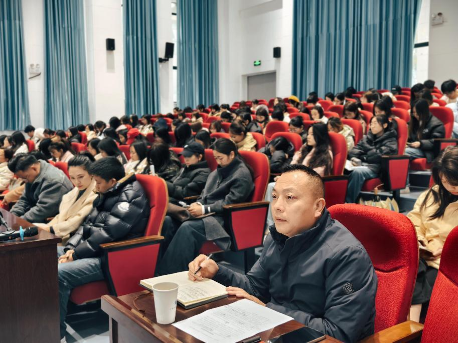 12月2日下午,学校在滨江校区岳秀楼翔凤厅成功举办“红色舞台剧的时代价值与意义”专题讲座。本次讲座由学校红色文化研究中心、师范学院党总支、经济与旅游管理学院党总支及马克思主义学院联合主办,广安市音乐舞蹈家协会党支部、学校红育经英辅导员工作室、优扬教育文化传播工作室、音乐教育教研室等协办,特邀一级作曲、广安市文联副主席、市音乐舞蹈家协会主席、学校客座教授张宗科担任主讲。讲座由红色文化研究中心主任石乾福主持。