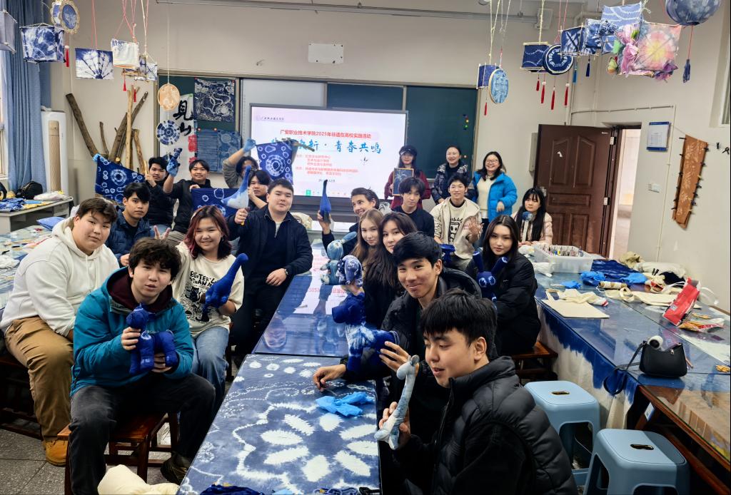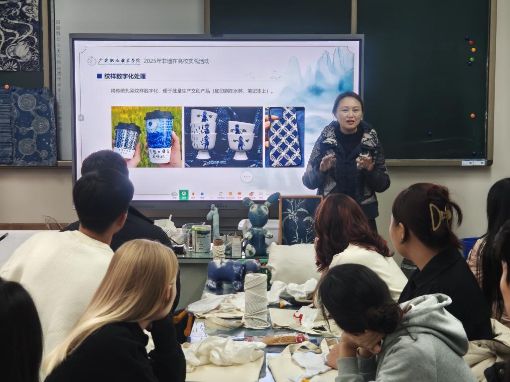 为深入弘扬中华优秀传统文化,促进校园国际文化交流,12月3日下午,红色文化研究中心联合艺术与设计学院、对外交流与合作处共同主办的“非遗焕新·青春共鸣”非遗在高校实践活动在红研中心多功能室、艺术与设计学院扎染工作坊成功举行。活动吸引了来自多个国家的留学生与中国学生社团骨干40余名代表共同参与。