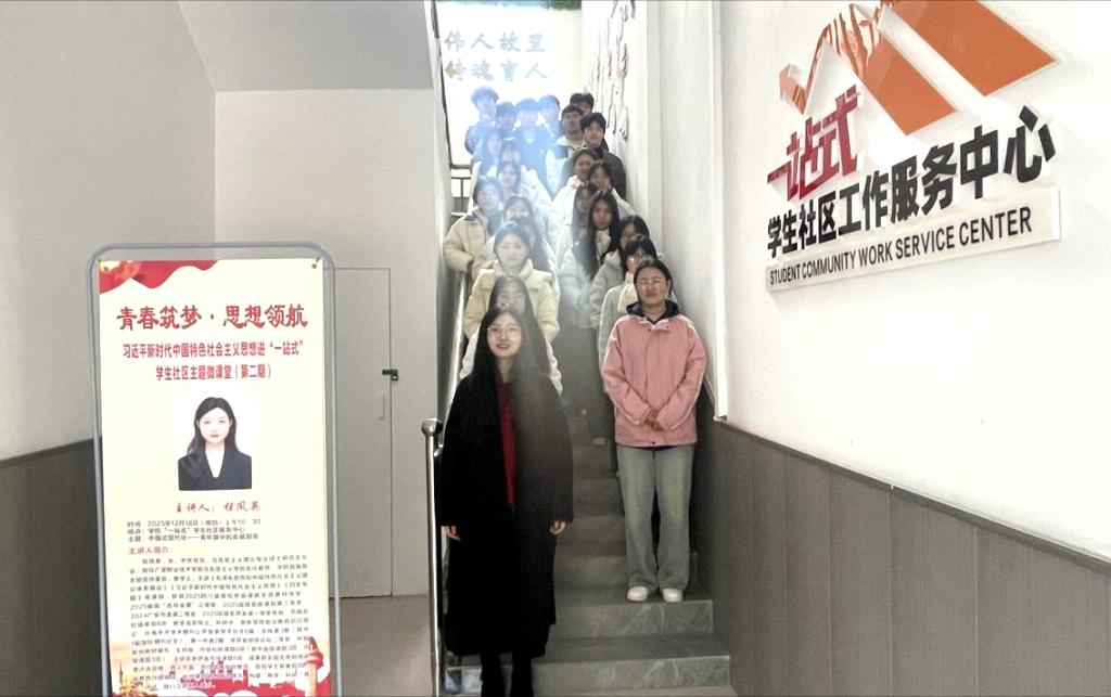 为深入学习宣传贯彻党的二十大和二十届历次全会精神,推动习近平新时代中国特色社会主义思想入脑入心,12月18日,马克思主义学院“思源”宣讲团,依托“一站式”学生社区平台启幕“青春筑梦・思想领航”主题微课堂(第二期)。这支由全校思政教师与辅导员骨干组建的宣讲队伍,以“伟人故里铸魂育人”的红色育人基因作底色,围绕“中国式现代化——青年眼中的发展图景”主题,与近30名学生代表在社区育人空间中展开思想共鸣。