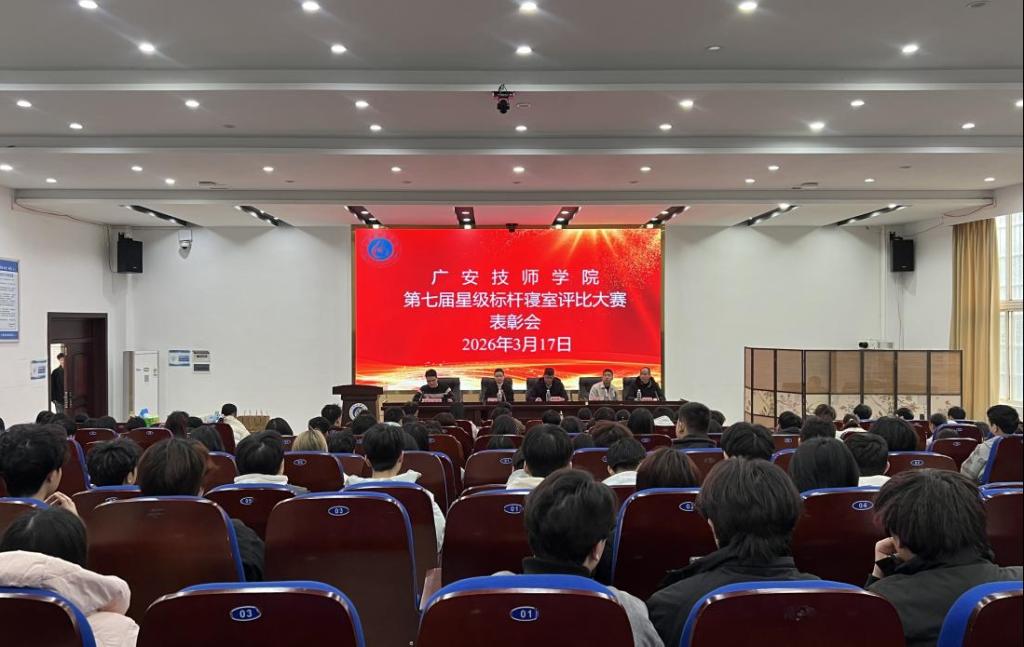 为深入推进文明寝室建设,充分发挥优秀寝室的示范引领作用,3月17日下午,广安技师学院在先圣厅举行了第七届星级标杆寝室评比大赛表彰大会。学院党总支副书记唐元刚、招生与学生工作部全体成员、全体班主任、各班班长、生活委员及寝室长参会。