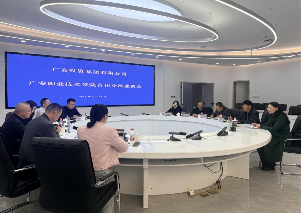 为深化产教融合、推动校企协同发展,精准对接地方数字产业人才需求,3月25日,广安投资集团有限公司与广安职业技术学院在广安市民服务中心开展校企合作交流活动。广安职业技术学院党委委员、副校长袁驰,广安投资集团有限公司党委委员、副总经理高欣,广安职业技术学院电子与信息工程学院相关负责人及广安投资集团有限公司资本运营部、广安投资集团有限公司大数据集团相关领导出席活动。