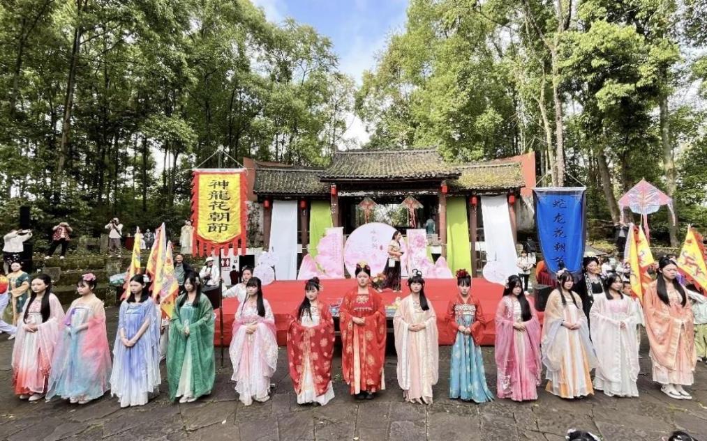 4月12日,“汉韵賨城醉美花朝”广安市第三届神龙花朝节在神龙山巴人石头城景区·蛇龙书院盛大举行。花朝节始于唐代,盛于两宋。古时花朝,人们游春扑蝶、种花赏红、制作花糕、祭祀花神,祈愿风调雨顺、国泰民安,承载着中华民族敬畏自然、热爱生活、祈福迎祥的深厚文化内涵。在大力推进中华优秀传统文化创造性转化、创新性发展的背景下,本届花朝节通过花神祈福、国风汇演、非遗体验等活动,打造了一场文旅融合的春日文化盛宴。