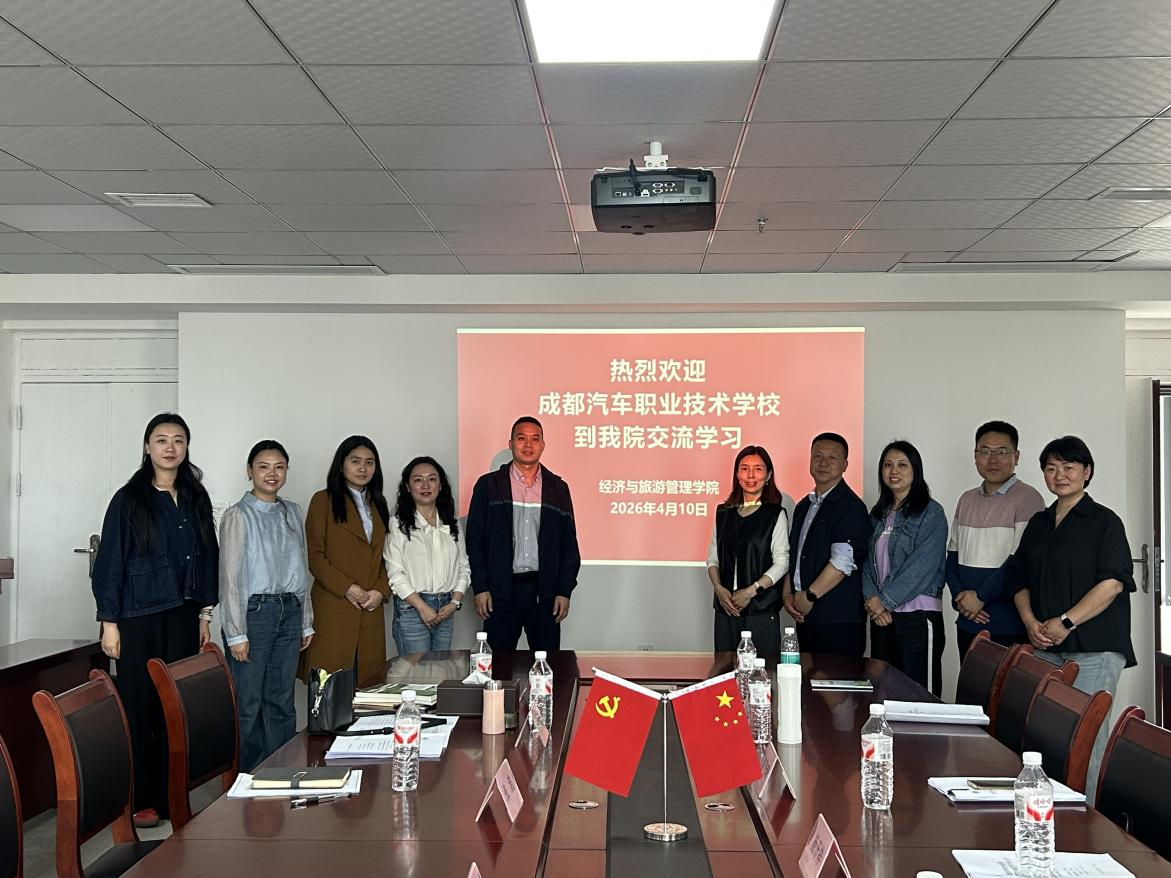 为深化中高职五年一贯制人才培养合作,4月10日,成都汽车职业技术学校现代服务部教务处主任汤飞琼、实训科主任杨开祥一行6人来我院开展交流学习。学院副院长张浩、旅游管理专业带头人姚懿菲及旅游教研室相关教师参与接待与交流。