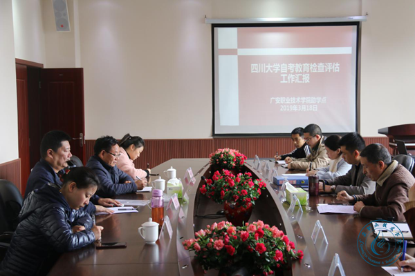 3月18日至19日,四川大学成人与继续教育学院黄太送副院长一行5人到我校检查指导自考工作。工作汇报会在九思楼204会议室召开,广安电大副校长、继教院院长王秋林及相关科室人员参加会议,会议由继教院党总支书记熊运华主持。