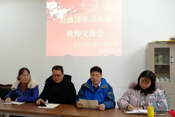 12月11日,电子与信息工程学院在致用楼315召开赴德国学习培训教师交流会。学院全体教职工参加了会议。